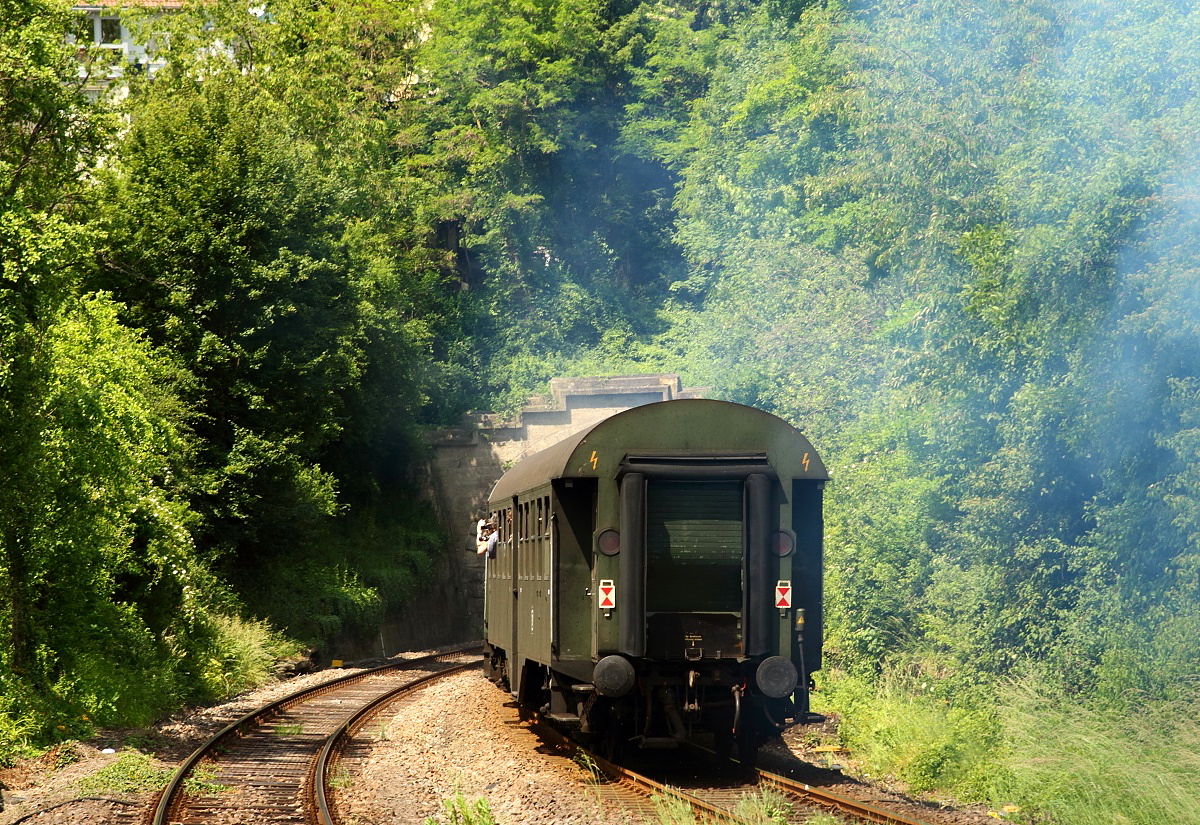 Abschied vom Dampfspektakel 2014: Nachschuss auf einen von 41 360 geführten Sonderzug bei der Einfahrt in den Imsweiler Tunnel (01.06.2014)