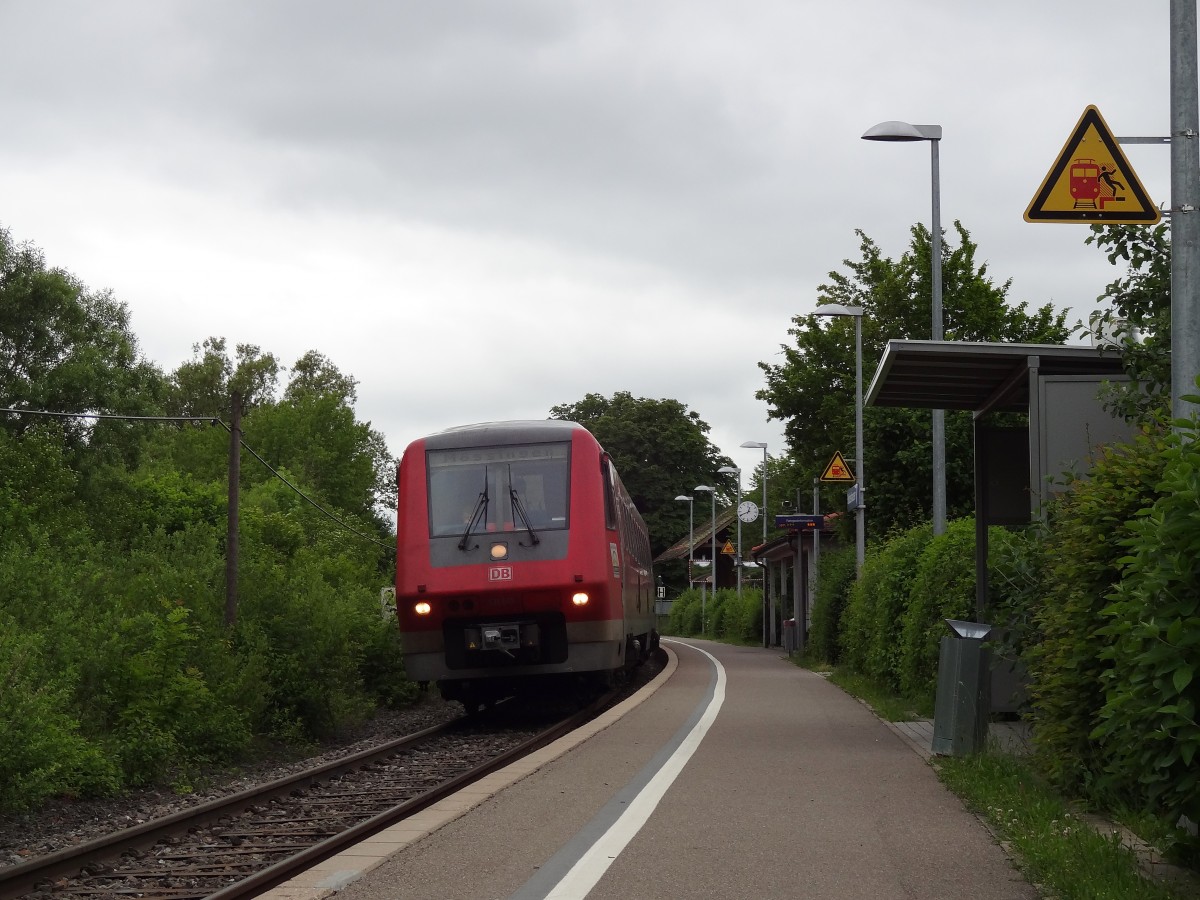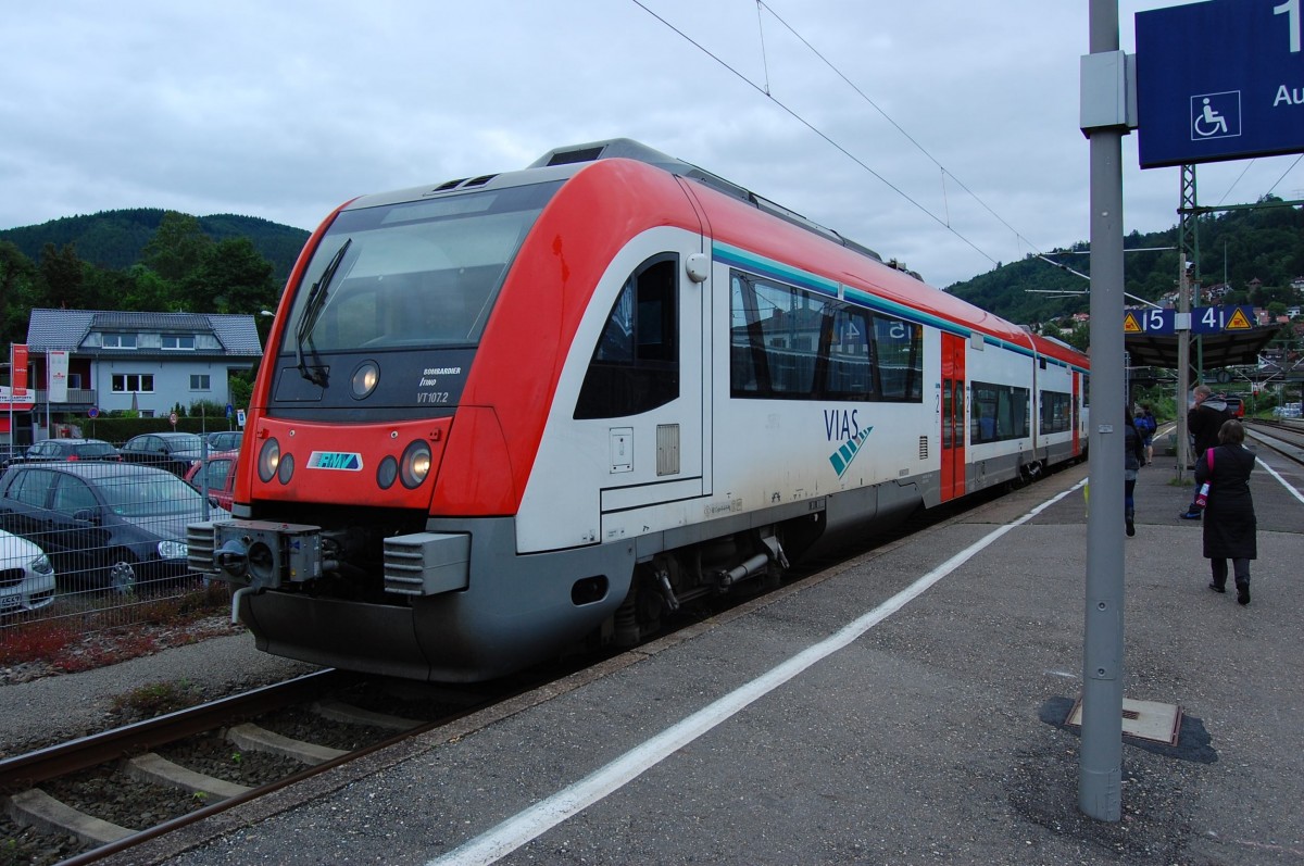 In Eberbach Neckar steht der VIAS Triebwagen 107 zur Abfahrt nach Frankfurt Hbf bereit......30.5.2014