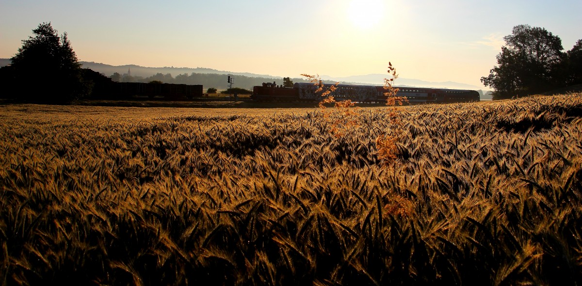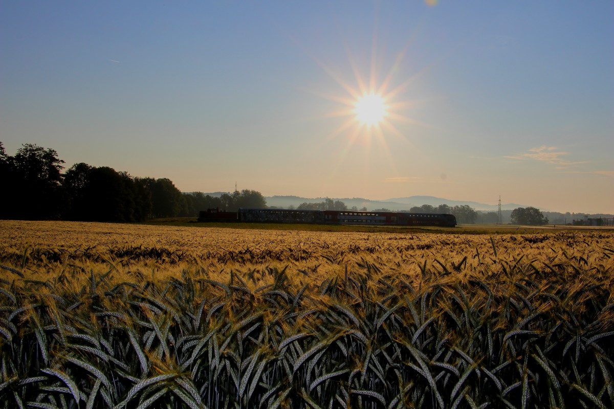 Kornfelder gibt es heuer zuhauf in der Weststeiermark. R8554 am frühen Morgen des 4.Juni 2014 bei St.Martin im Sulmtal Bergla