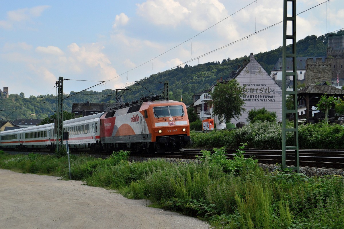 Bei Oberwesel geriet mir die MÄRKLIN 120 112-8 mit einem IC-Wagenzug vor die Linse am Montag den 1.6.2014
