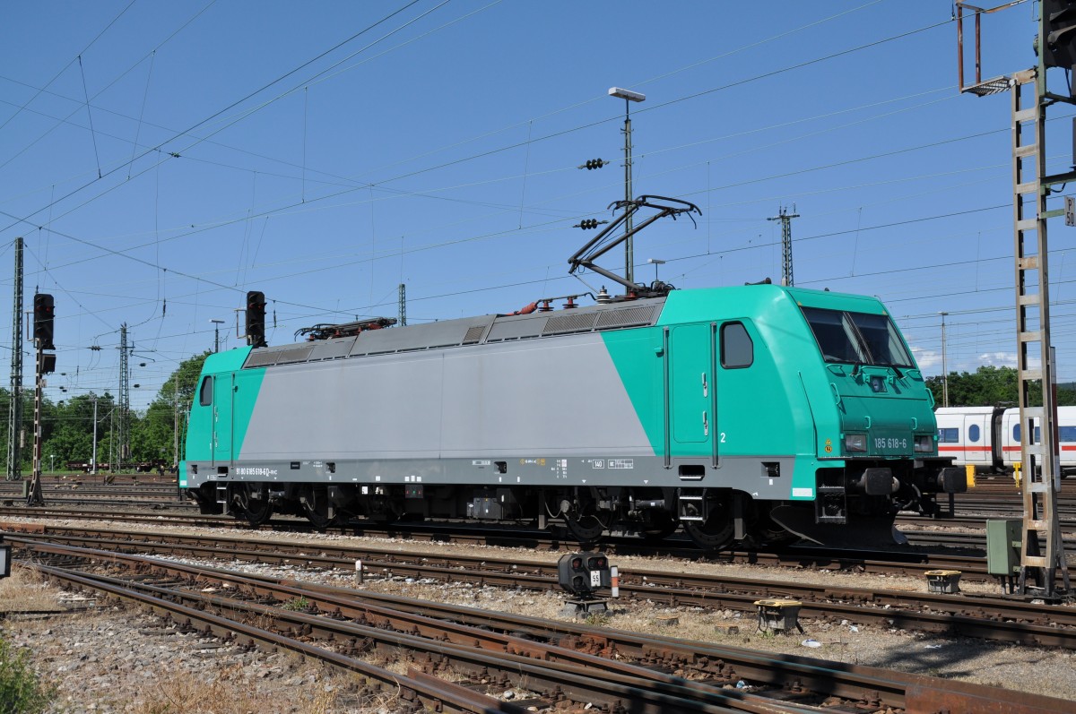 DB Lok 185 618-6 durchfährt den Badischen Bahnhof in Basel. Die Aufnahme stammt vom 23.05.2014.