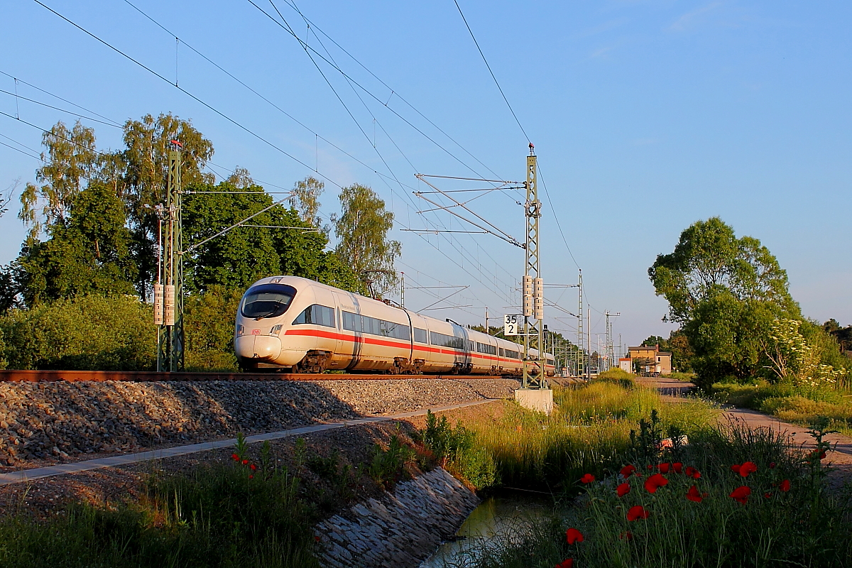 Der Tz 1101 "Neustadt an der Weinstraße" als ICE 1506 von München nach Rostock am 01.06.2014 in Nassenheide.