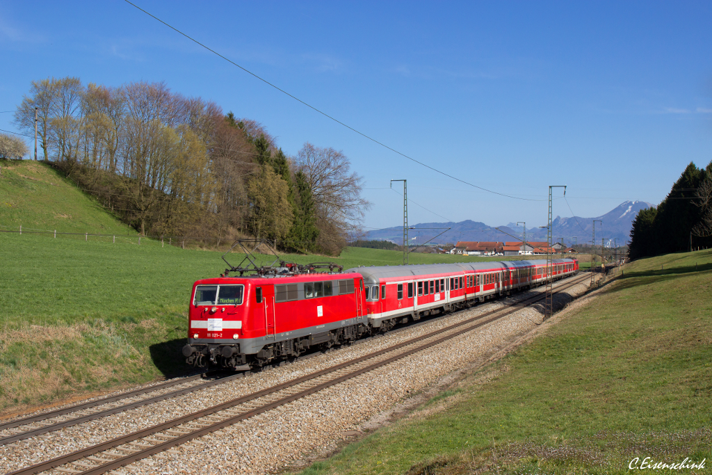 Die DB 111 021 war eine der Meridian 111er, die die DB n-Wagen Garnituren bespannte, die für den Meridian im Einsatz waren.