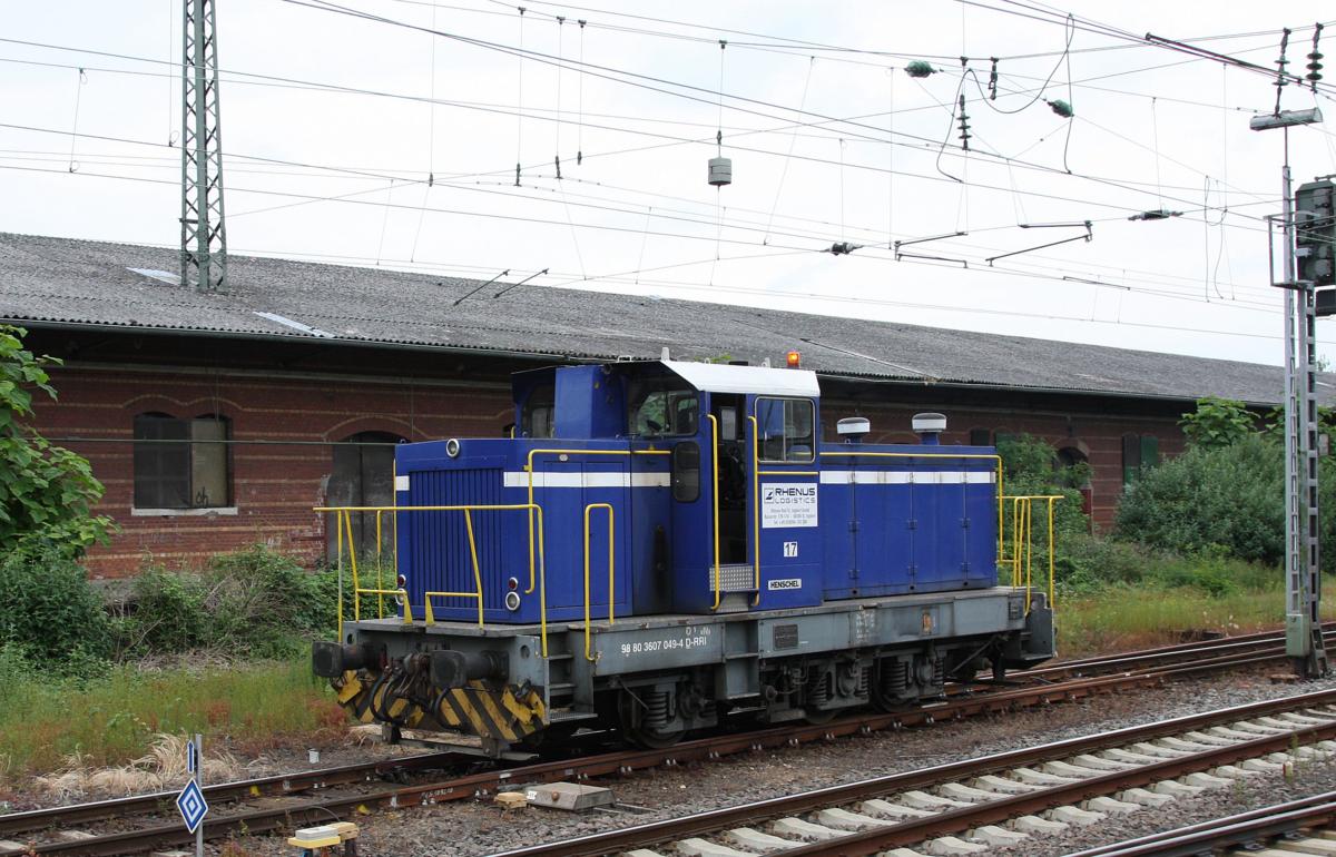 Henschel Lok 17 von Rhenus Logistics brachte am 29.5.2014 einen Container Zug zum Bahnhof Worms und fuhr anschließend wieder solo Richtung Ludwigshafen davon.