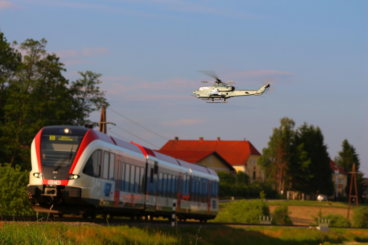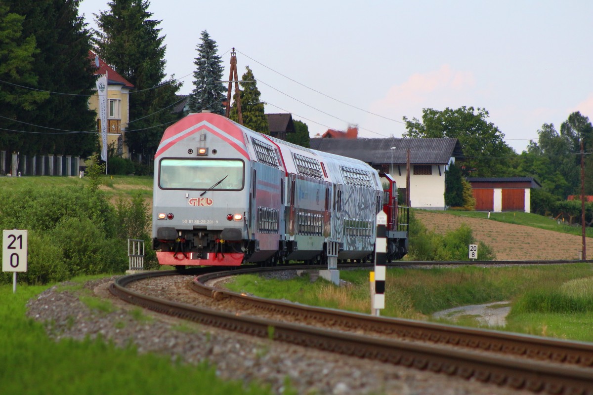 Bei der einfahrt ín den Bahnhof St.Martin im Sulmtal Bergla wird R8554 von der aufgehenden Sonne begleitet. 4.06.2014
