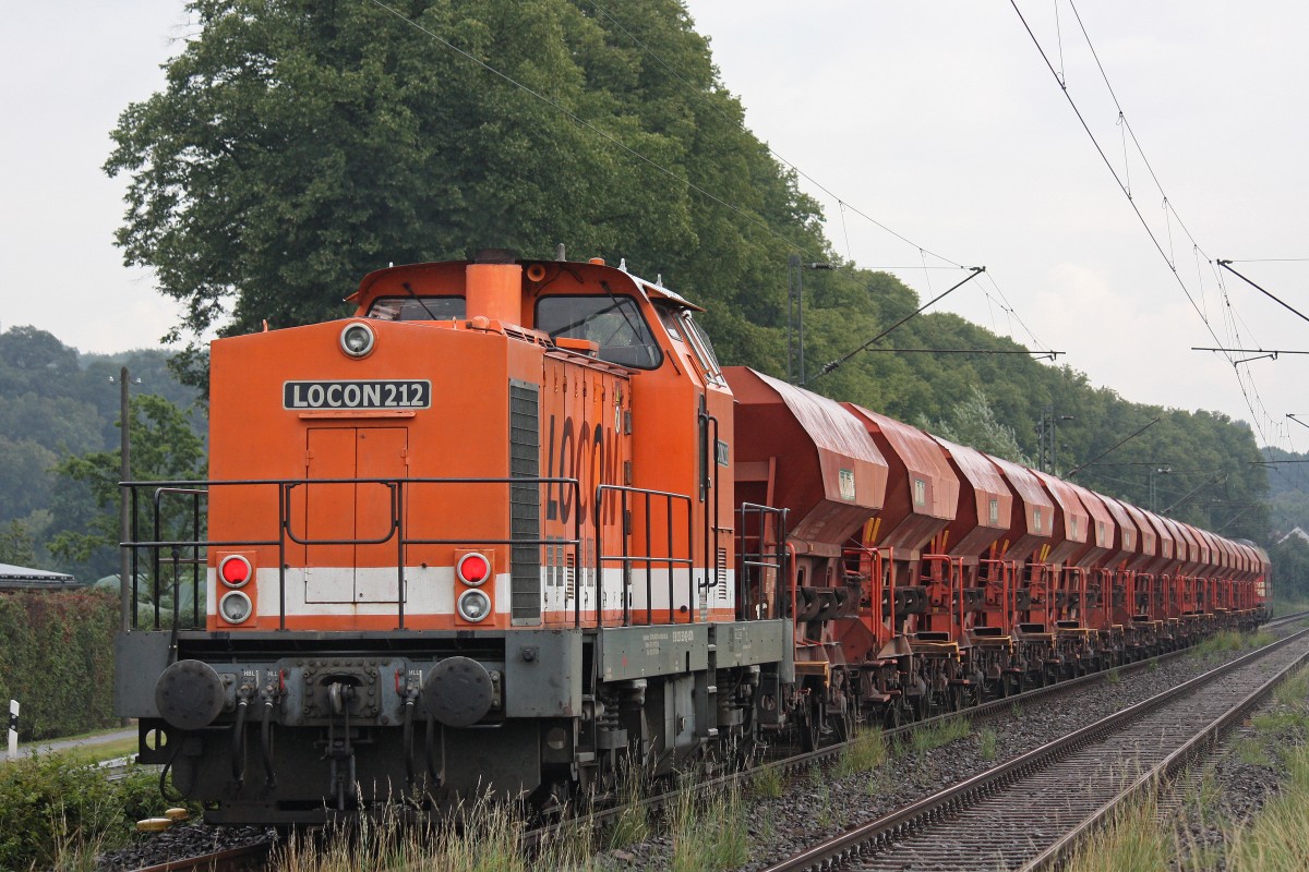 Locon 212 am 14.8.13 mit einem Schotterzug und CRS 228 321 an der Spitze in Essen-Kettwig auf dem Weg zur Baustelle in Essen-Werden.