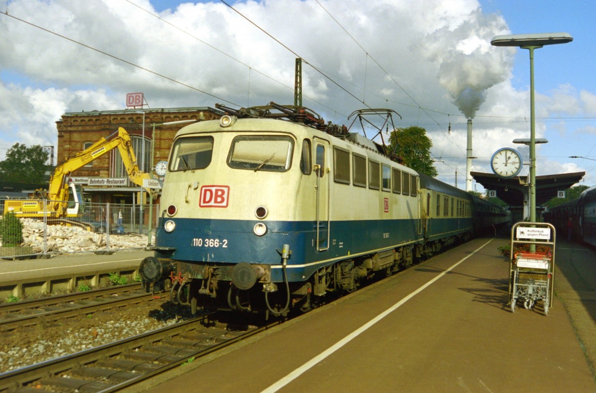 110 366 mit RE 24355 (Hamburg–Uelzen) am 16.10.1999 in Uelzen