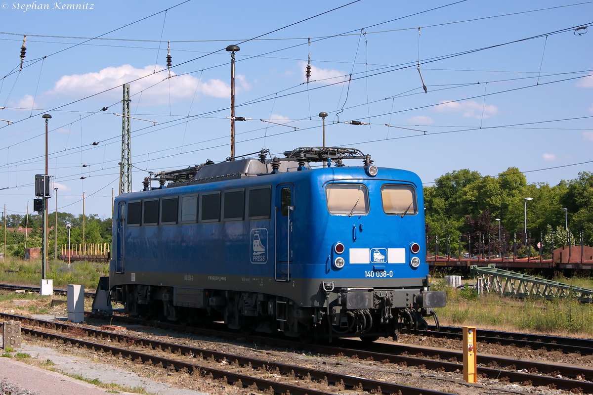 140 038-0 PRESS (140 851-7) stand in Stendal abgestellt und hatte dort auf ihren neuen Einsatz gewartet. 06.06.2014