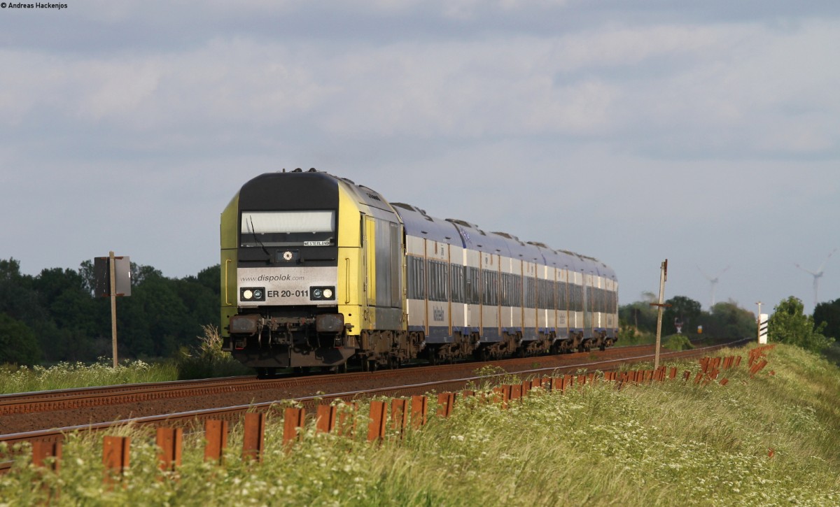 223 011-8 mit der NOB81722 (Hamburg-Altona-Westerland(Sylt)) bei Klanxbüll 28.5.14