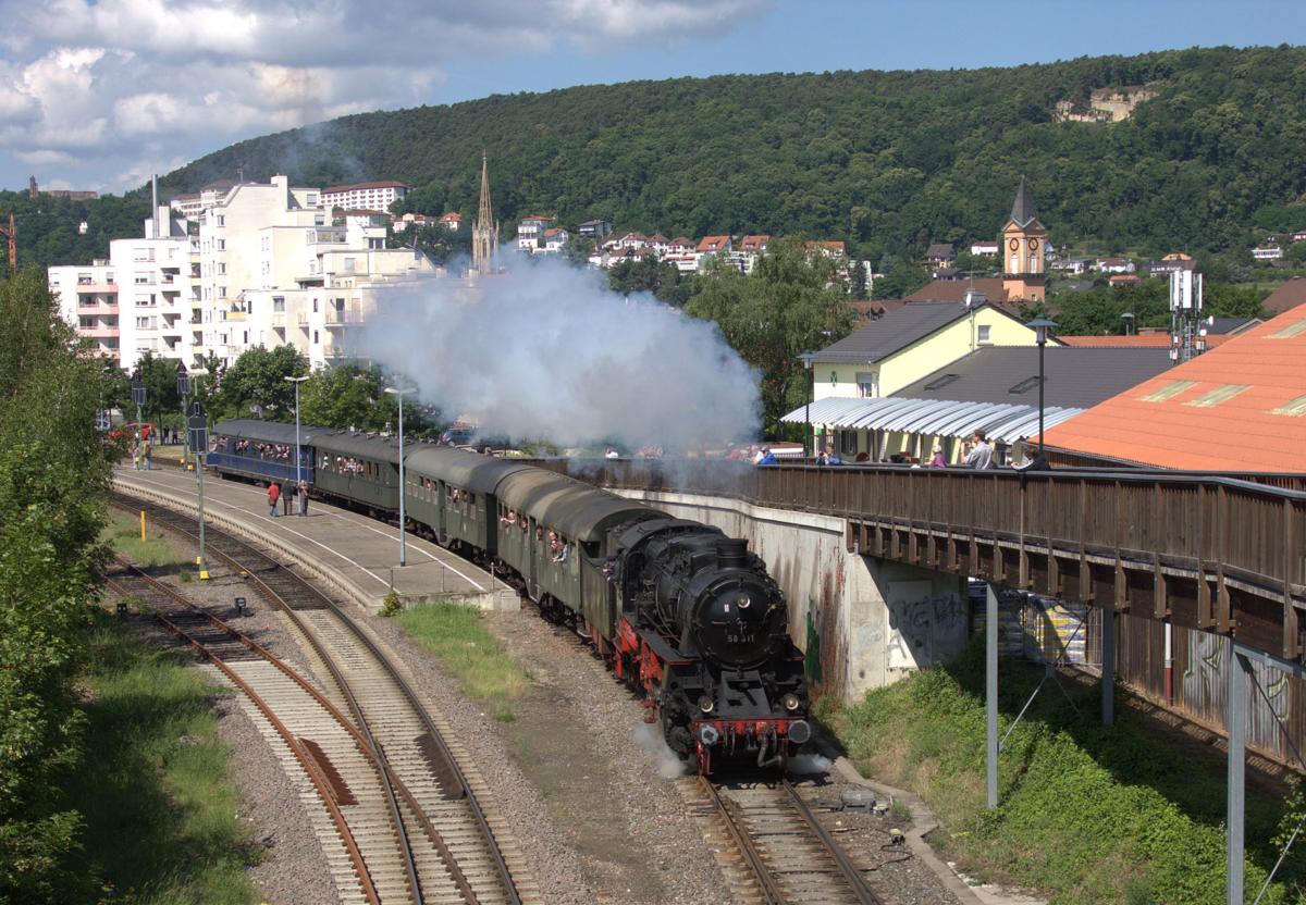58311 verläßt mit einem Sonderzug am 31.5.2014 im Rahmen des Dampfspektakels den Bahnhof Bad Dürkheim mit Ziel Neustadt Weinstraße.