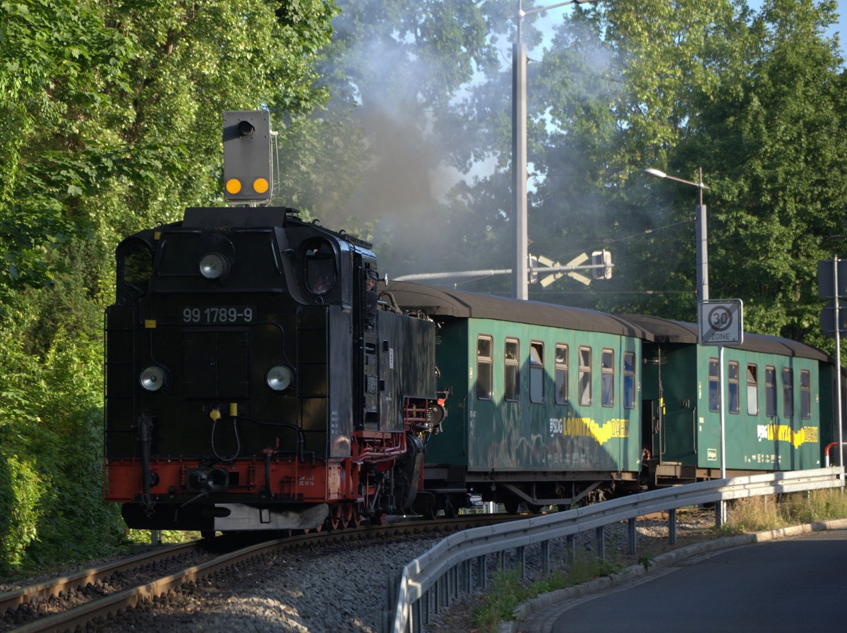 99 1789-9 mit dem Frühzug aus Radeburg in Radebeul Weißes Ross. 06.06.2014 06:57 Uhr.