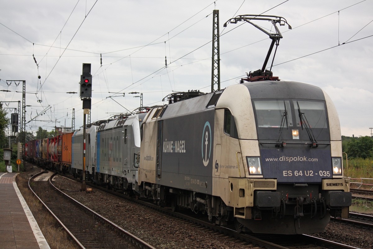 MRCE Dispolok/WLC ES 64 U2-035 mit Railpool 193 802+Railpool E186 143 und KLV nach Duisburg-Rheinhausen in Duisburg-Bissingheim.