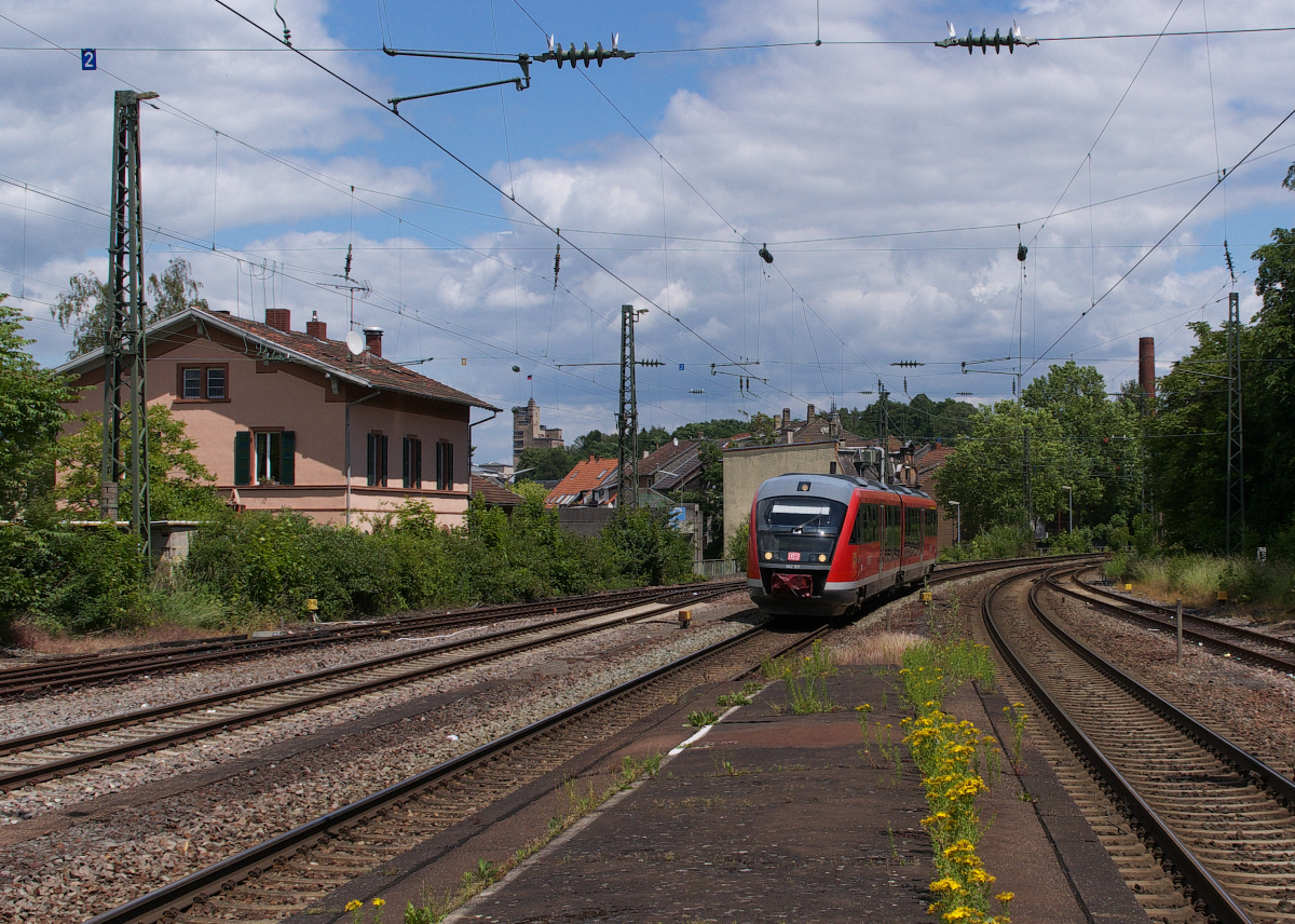 Unterwegs am Umwelttag...Am Umwelttag (05.06.2014) gab es kostenlose Tickets beim V V S (Verkehrsverbund Saar). Ivie und ich machten uns per Regionalbahn zuerst nach St. Ingbert auf. St. Ingbert gehörte zwischen 1815 (Zweiter Pariser Frieden) und 1920 zu Bayern. Danach wurden weiter Teile der Saar Region dem Völkerbund unterstellt. 642 107 ist als RB von Pirmasens Hbf. nach Saarbrücken Hbf. unterwegs.