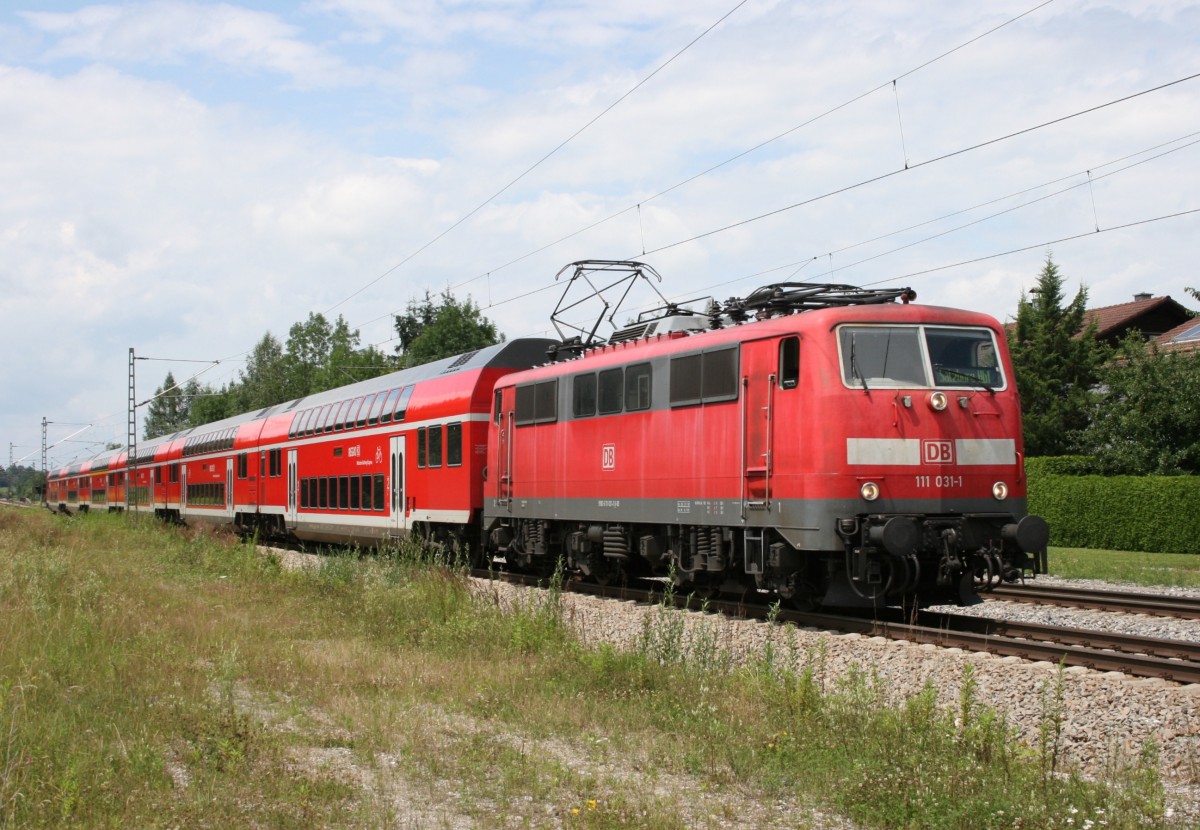 111 031 mit RE 30017 (München–Salzburg) am 10.07.2009 in Großkarolinenfeld