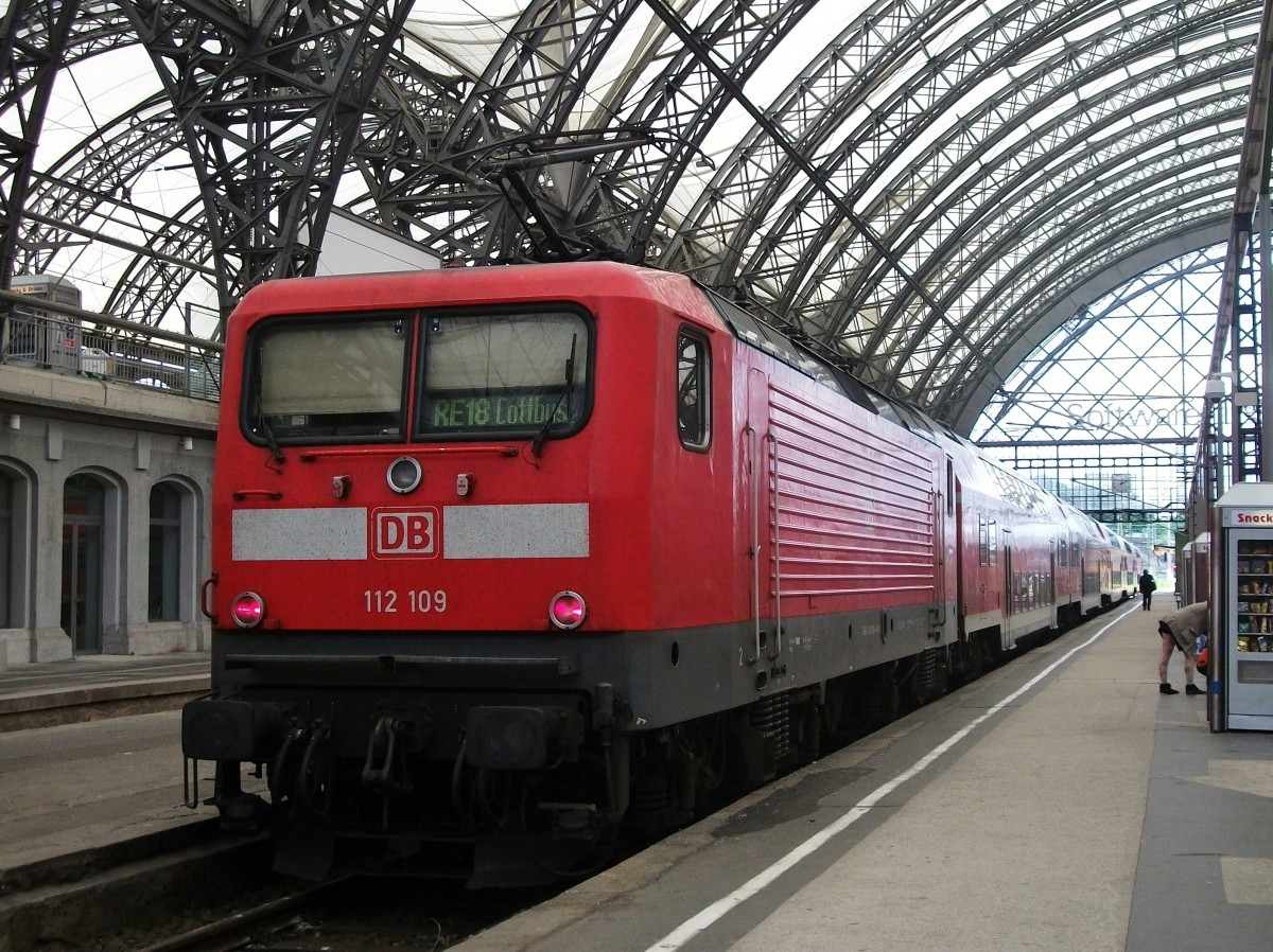 112 109 steht am 30.Mai 2014 mit dem RE18 nach Cottbus im Dresdner Hauptbahnhof.