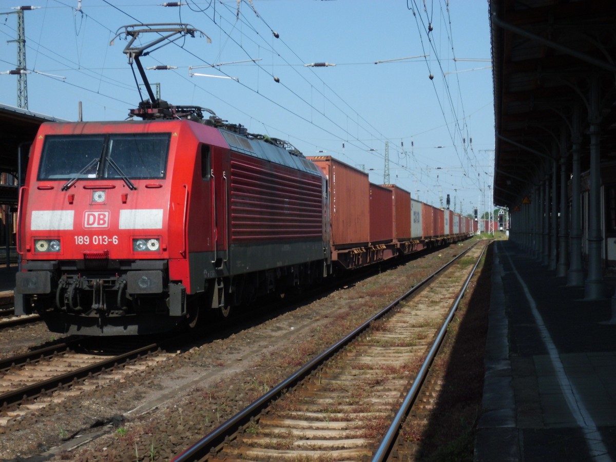 Am 09.06.2014 kam 189 013 mit einem Containerzug aus Richtung Magdeburg nach Stendal und fuhr weiter in Richtung Wittenberge.