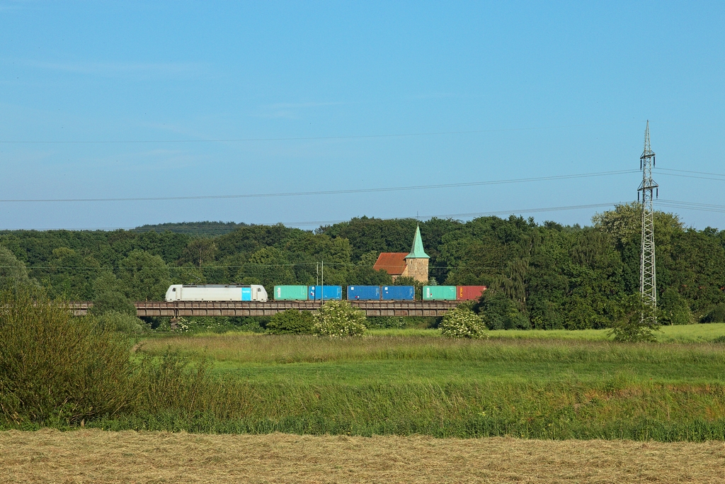 193 804-2 von RAILPOOL ist mit einen Containerzug bei Vollmerz unterwegs am 03.06.14.