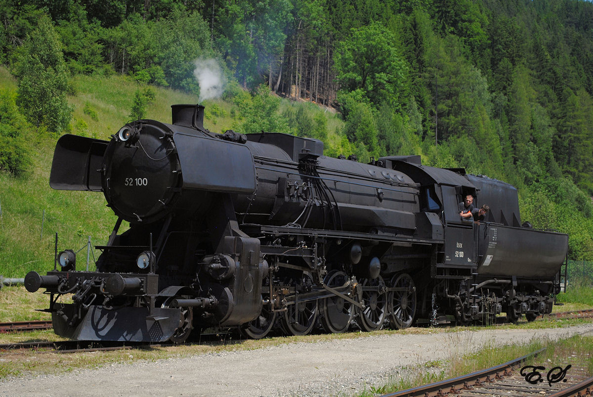 Anläßlich des 20-jährigen Jubiläums des Südbahnmuseums kam die 52.100 nach Mürzzuschlag.(08.06.2014)