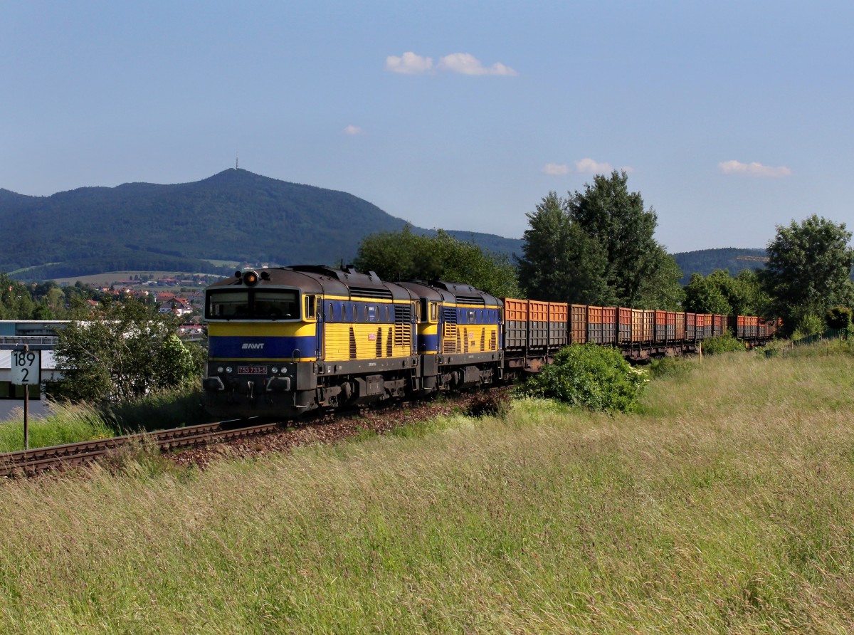 Die 753 733 und die 753 732 mit einem Güterzug am 07.06.2014 unterwegs bei Furth im Wald.