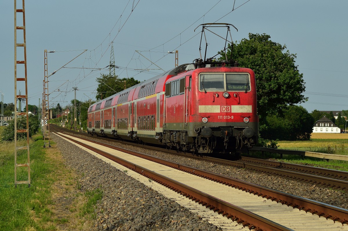 RE 4 nach Düsseldorf, geschoben von der 111 013-9 bei Wickrathhahn. 9.6.2014