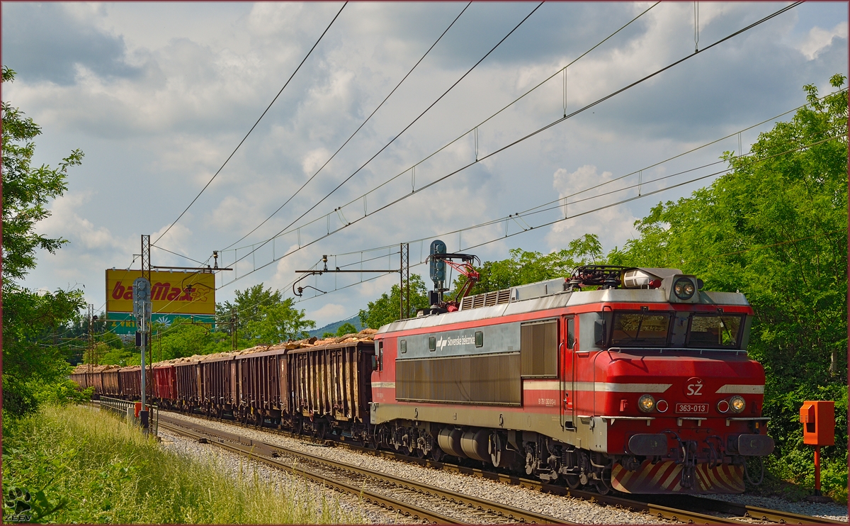 SŽ 363-013 zieht Güterzug durch Maribor-Tabor Richtung Norden. /26.5.2014