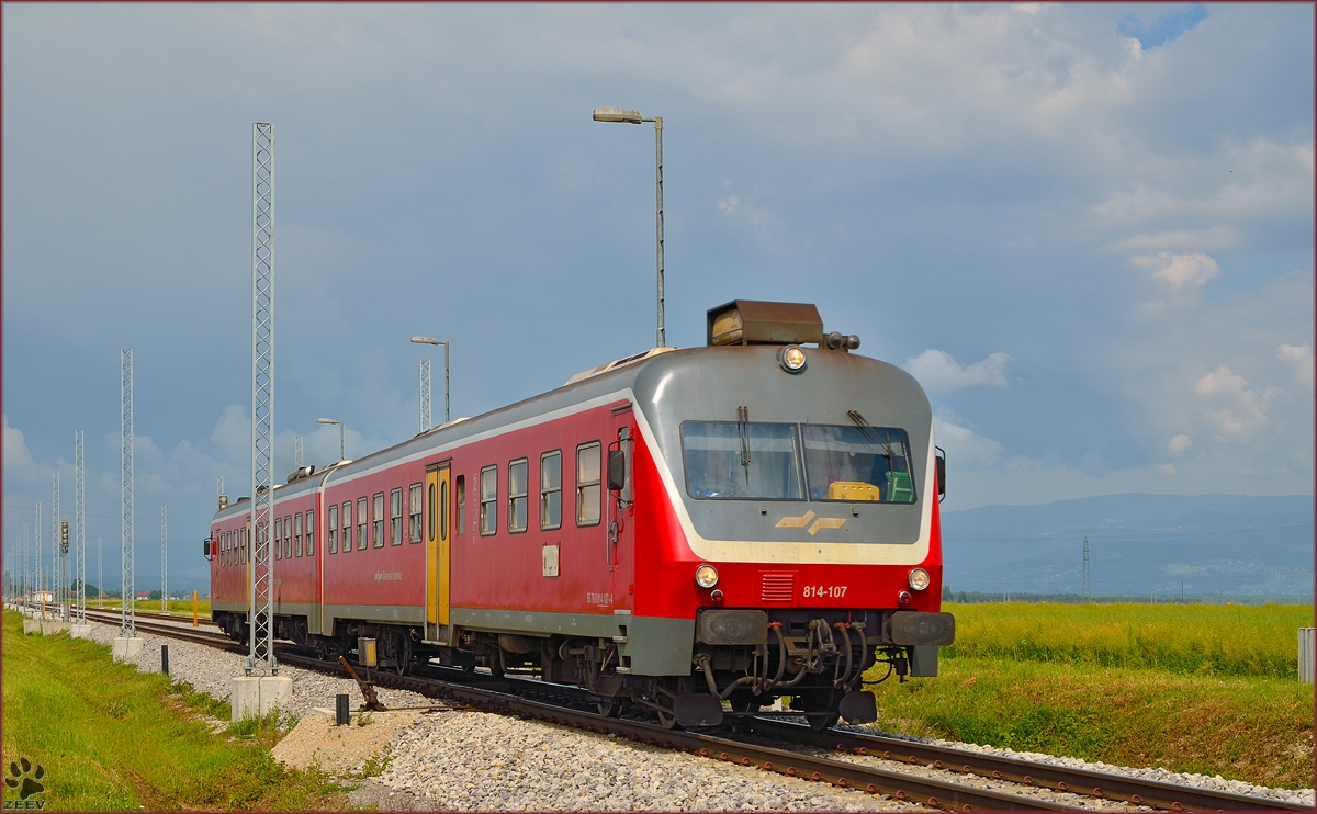 SŽ 814-107 fährt durch Cirkovce-Polje Richtung Ormož. /3.6.2014