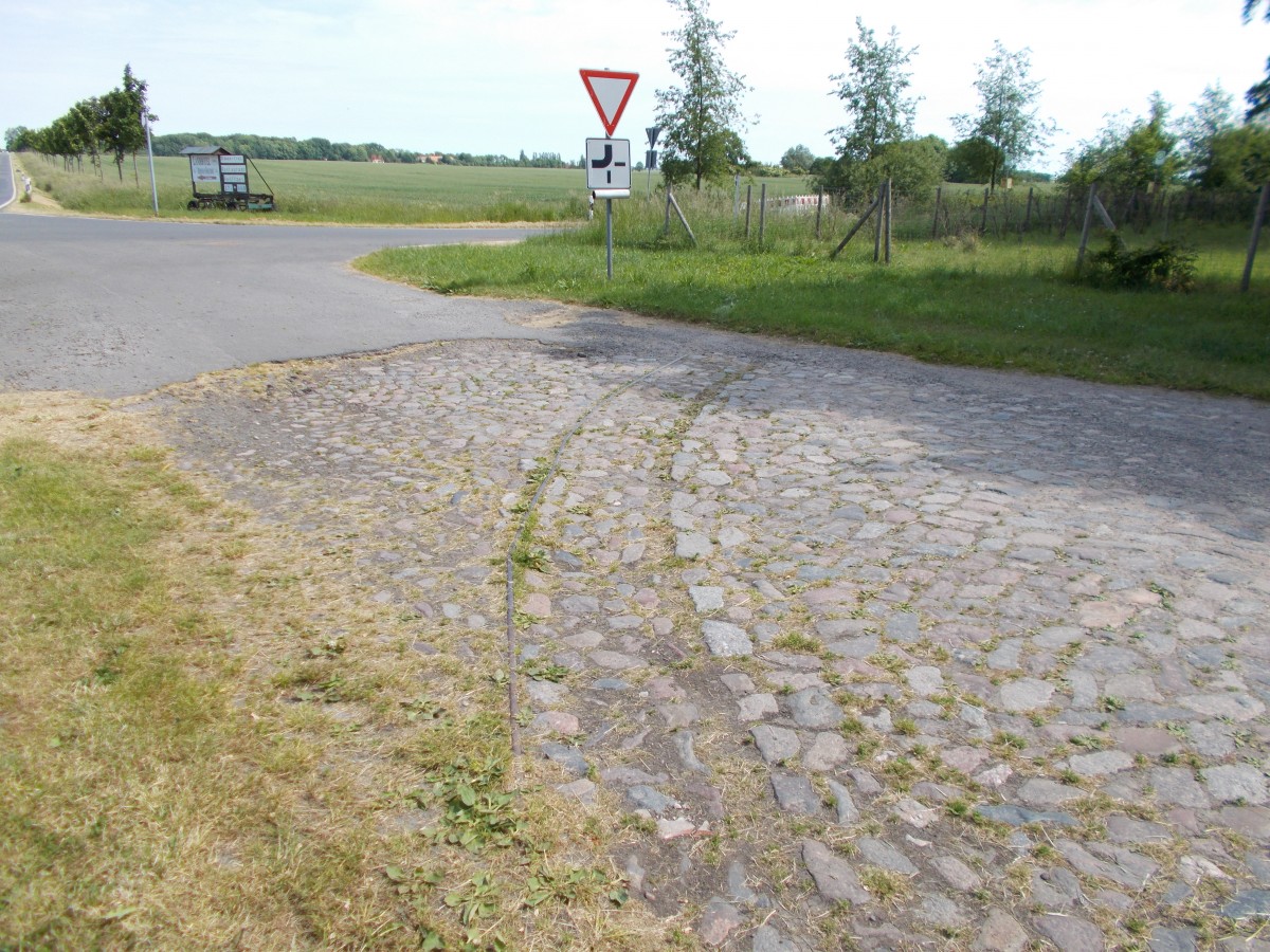 Zwischen den Ortschaften Wiek und Fährhof/Rügen liegt der ehmalige Gutshof Parchow hier findet man im dortigen Kopfsteinpflaster die Reste von einer ehmaligen Pferdebahn mit 600mm Spurweite.Auch an anderen Stellen auf dem ehmaligen Gutshof findet man noch Schienenreste auch den Streckenverlauf kann man an einzelnen Stellen noch erkennen.Aufnahme vom 08.Juni 2014.