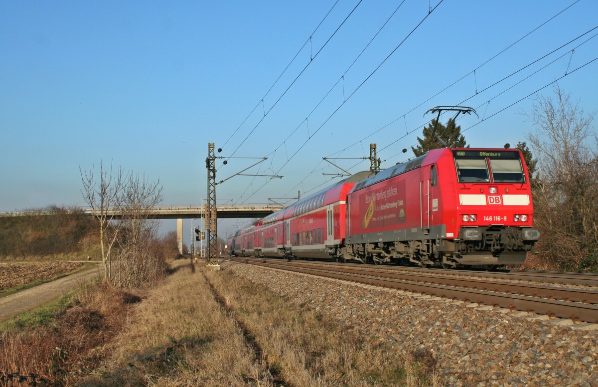 Mit 1116.222  Red Bulletin  an der Spitze rast der railjet 168 über die Neubaustrecke durchs Tullnerfeld. Die Aufnahme entand am 09.03.3014.