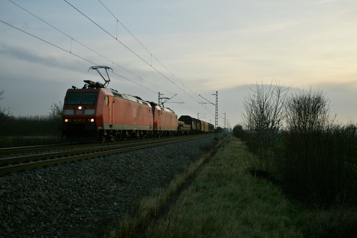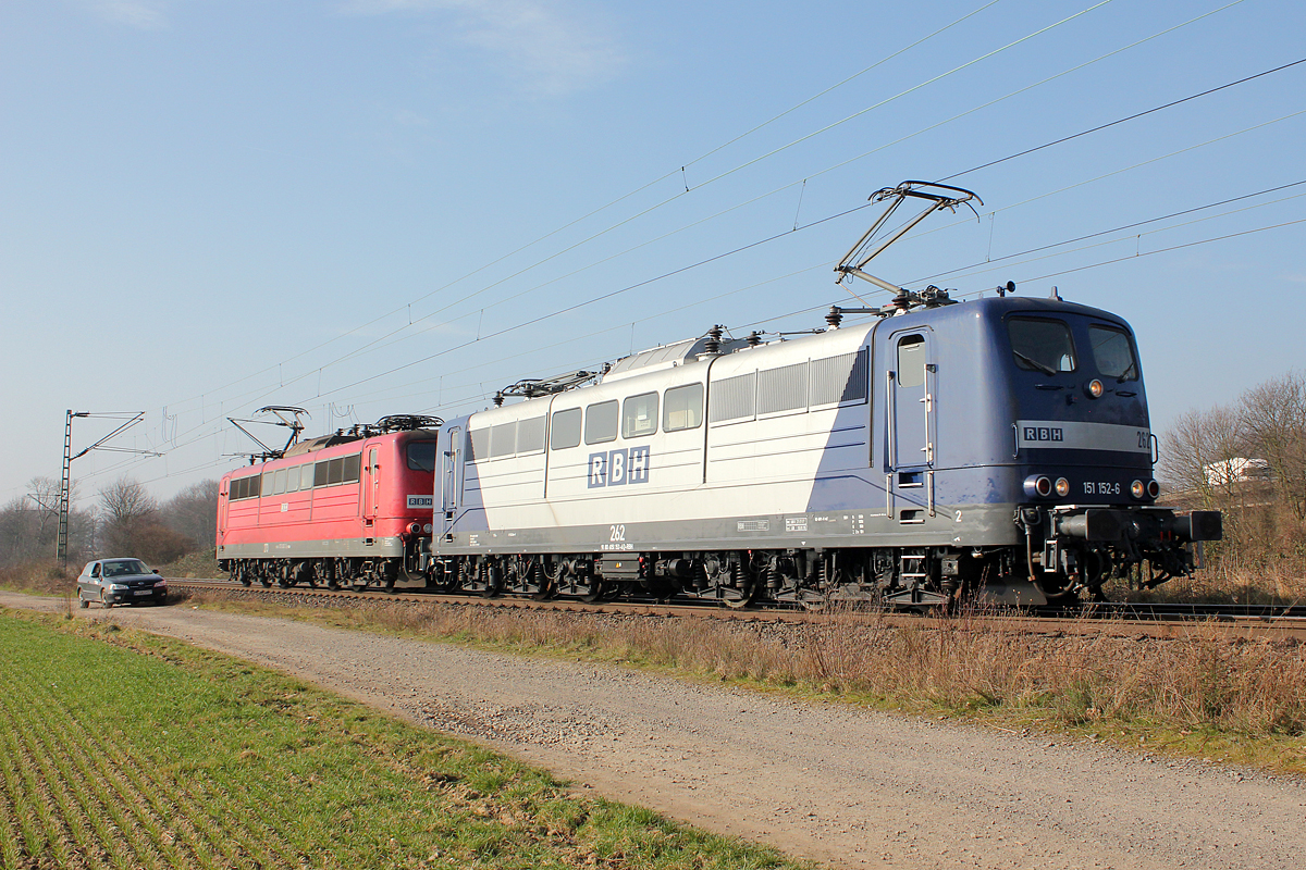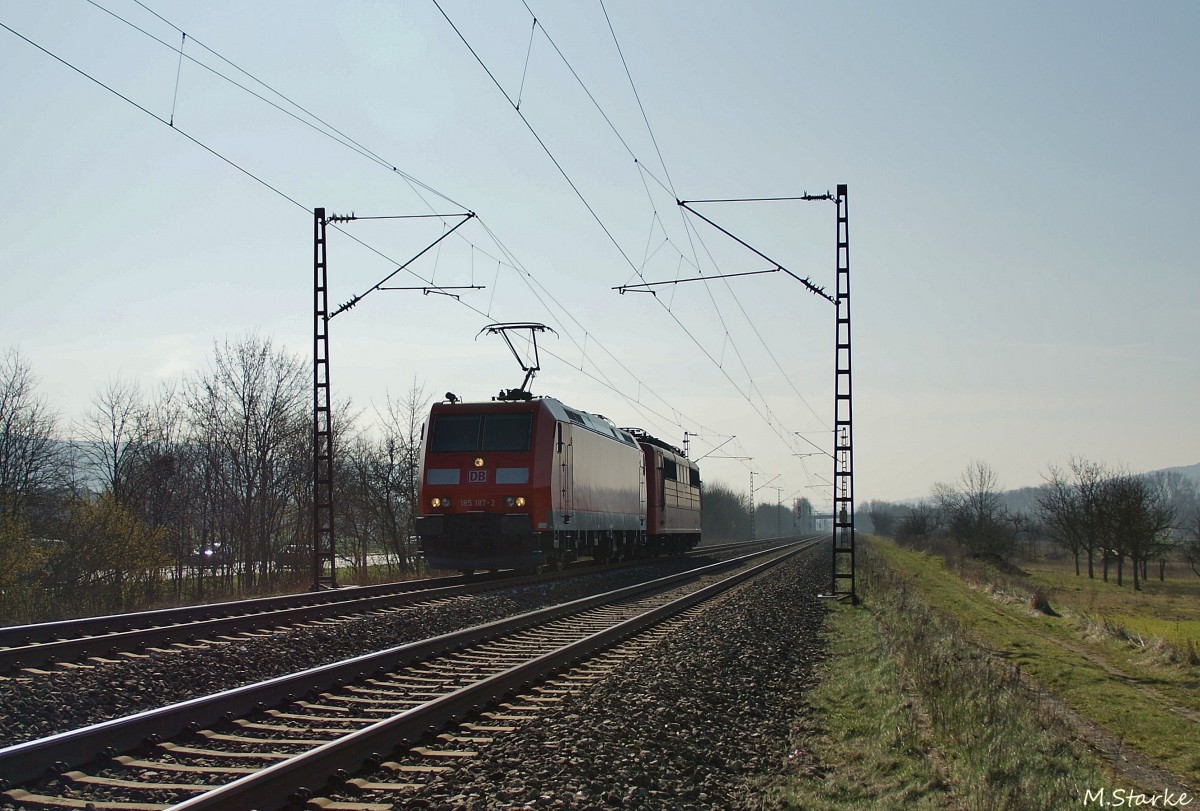 185 187-2 u. 151 080-6 sind solo unterwegs am 11.03.14 bei Thüngersheim.