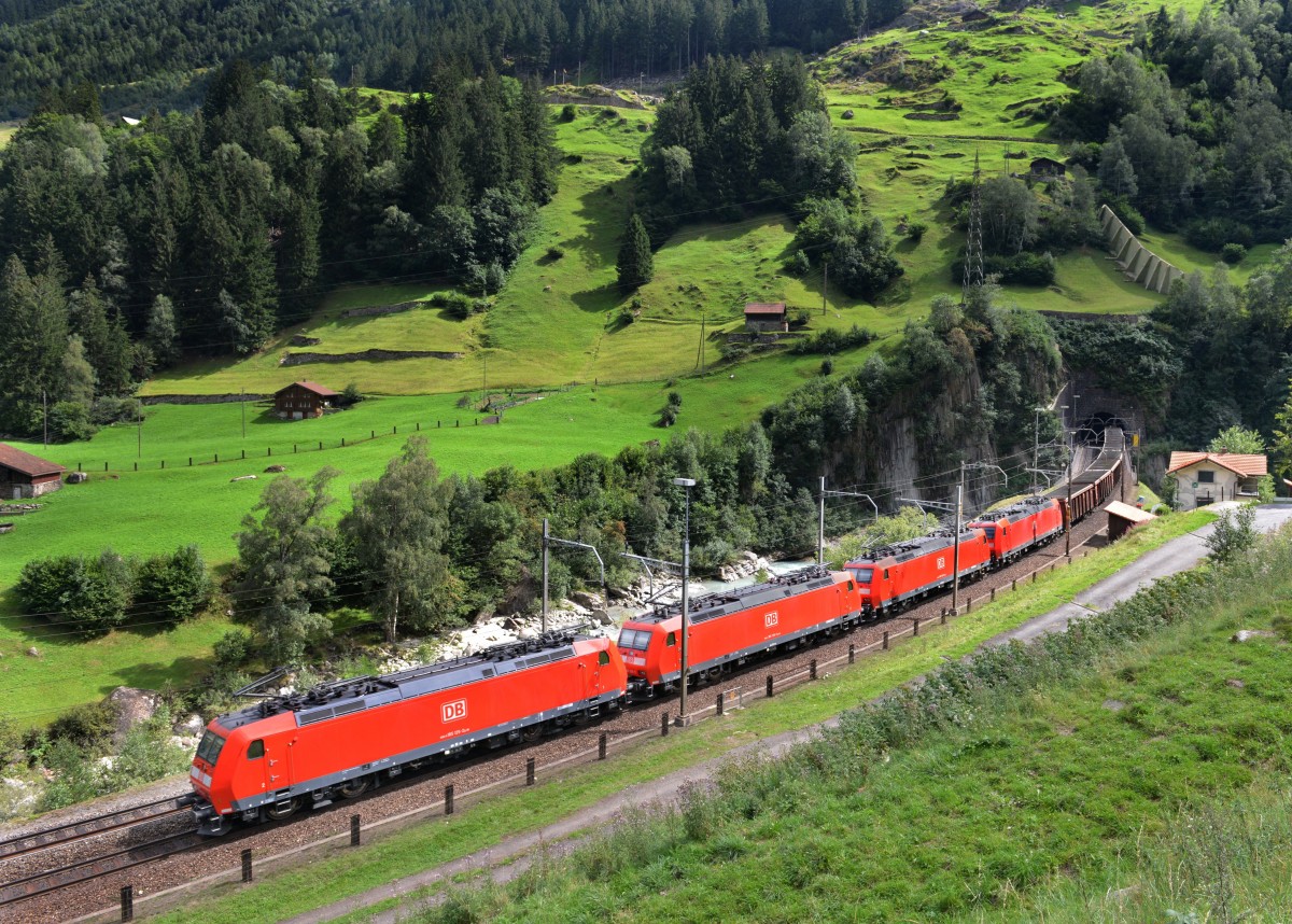 185 125 + 185 139 + 185 109 + 185 xxx mit einem Tonerdezug am 29.08.2012 bei Wassen.