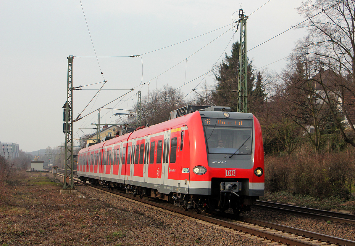 Auch die 143 870-4 ist am Sonntag den 9.3.2014 im S-Bahndienst Rhein-Ruhr eingesetzt. Hier hat sie gerade die Station Langenfeld Berghausen in Richtung Essen Hbf verlassen.