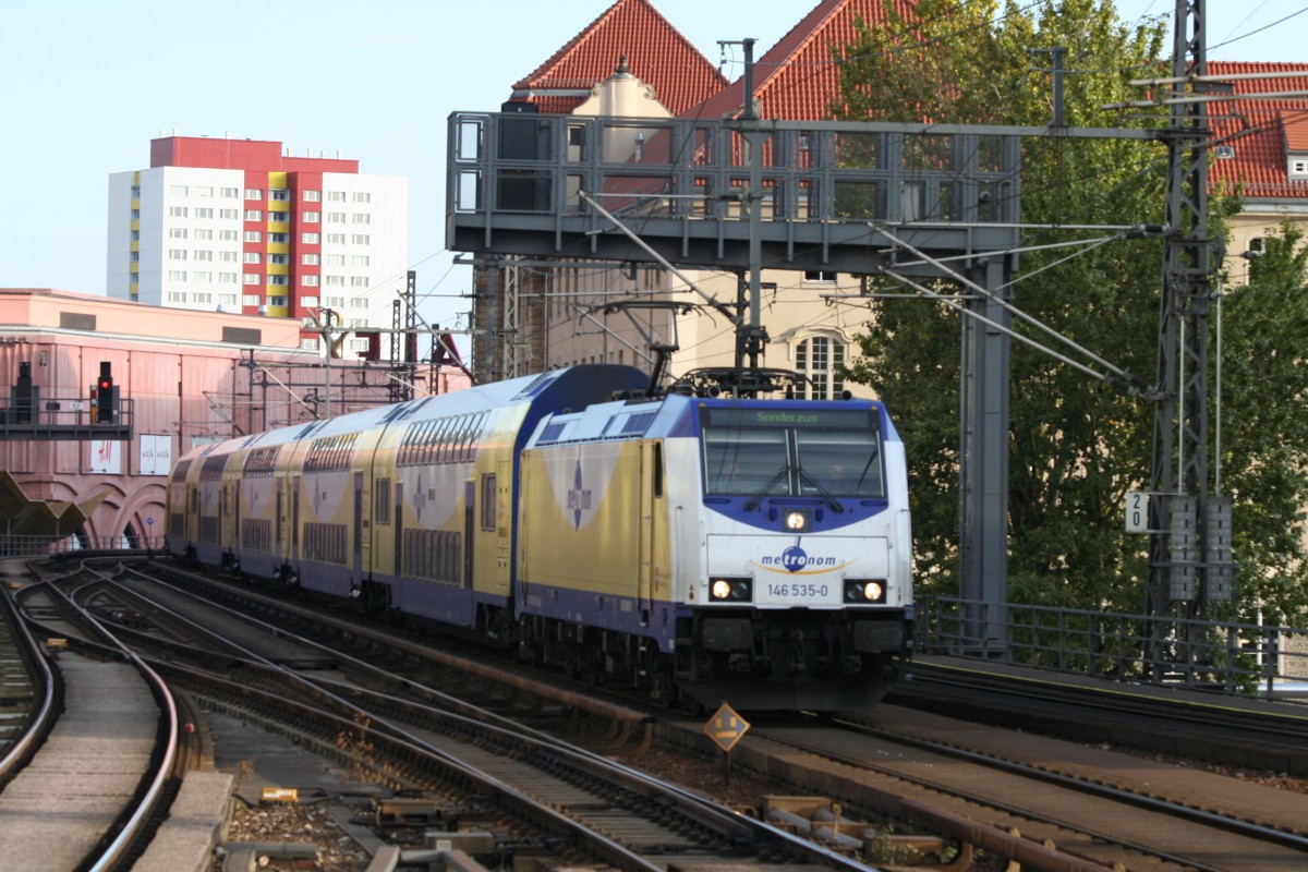 Ein Doppelstockzug auf der Rollbahn südlich von Osnabrück ist eine Rarität. Außerdem handelt es sich hier um eine nahezu originale Reichsbahn Garnitur. 143569 war mit neun Dostos am 9.3.2014 um 10.45 Uhr in Hasbergen in Richtung Dortmund unterwegs. Ca. 1000 Fußball Fans von Hansa Rostock fuhren zum Auswärtsspiel nach Dortmund.