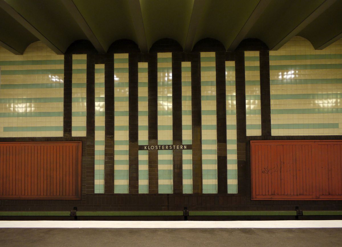 Art-Deco im Hamburger Untergrund: original restaurierte Tunnelwand der U-Bahnhaltestelle  Klosterstern . 9.3.2014