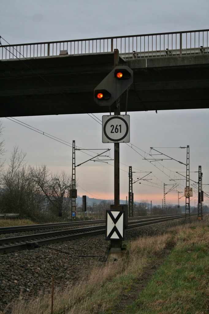 Am 3.02.2014 war um 6 Uhr für den Trafozug zum Umspannwerk Friedrichsgabe das Ziel fast erreicht: Mit dem LÜ-Begleitwagen vorraus fährt der Zug in die Station Haslohfurth ein, hier zweigt das Anschlussgleis zu o.g. Umspannwerk ab.