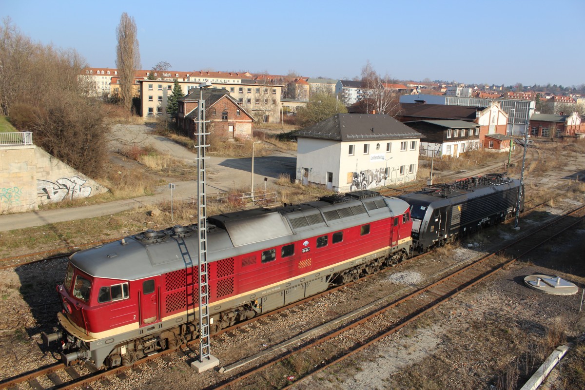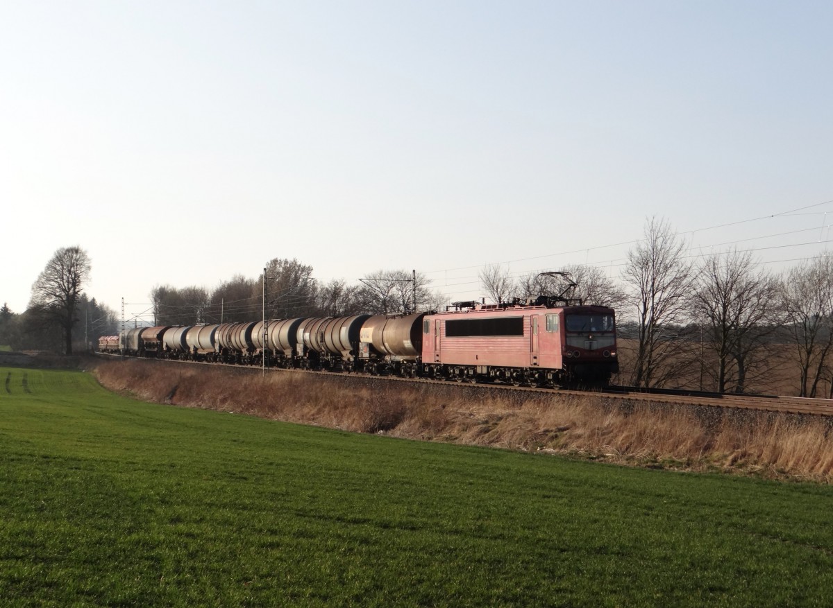 155 219 ist am 14.03.14 mit einem Frankenwaldumleiter an der Schöpsdrehe bei Plauen/V. zusehen.