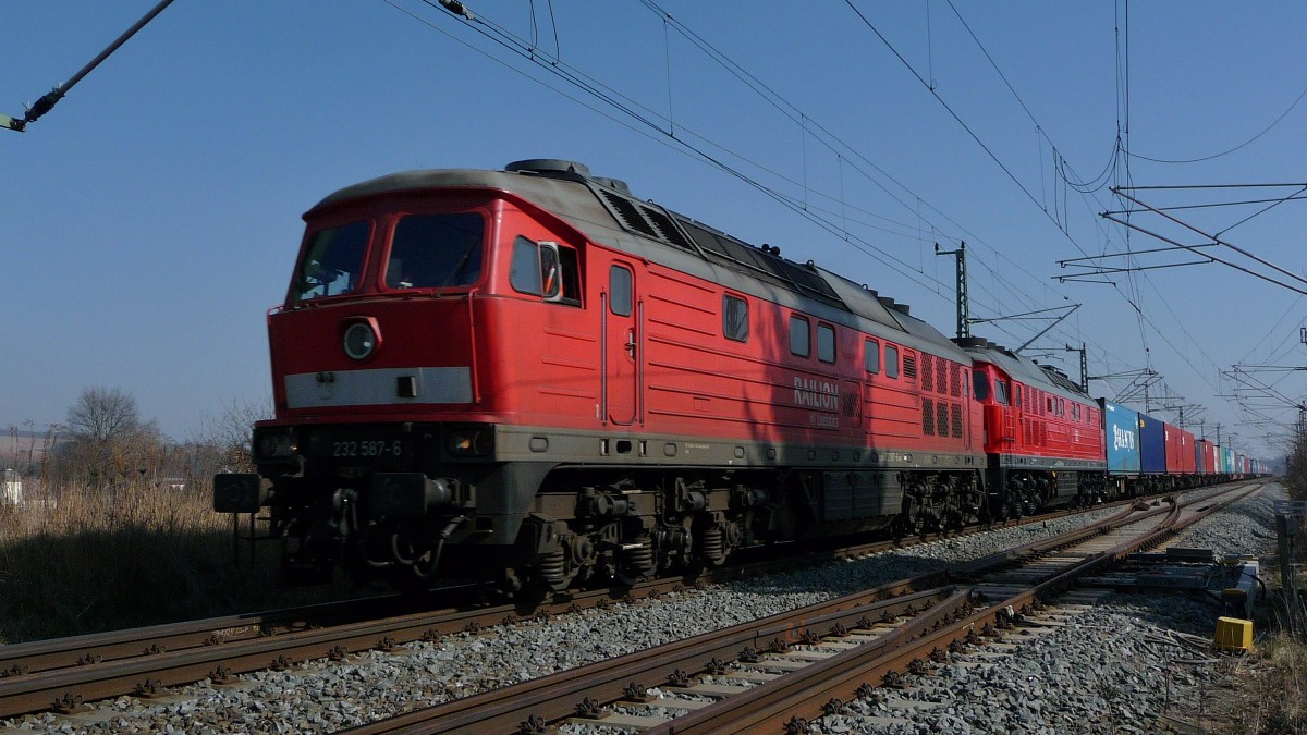 14.03.2014 Mal wieder zwei Russen mit dem Container Richtung Hof. Seit Fahrplanwechsel sind sie nur noch die Ausnahme zwischen Zwickau und Hof. Hier bei Steinpleiß.