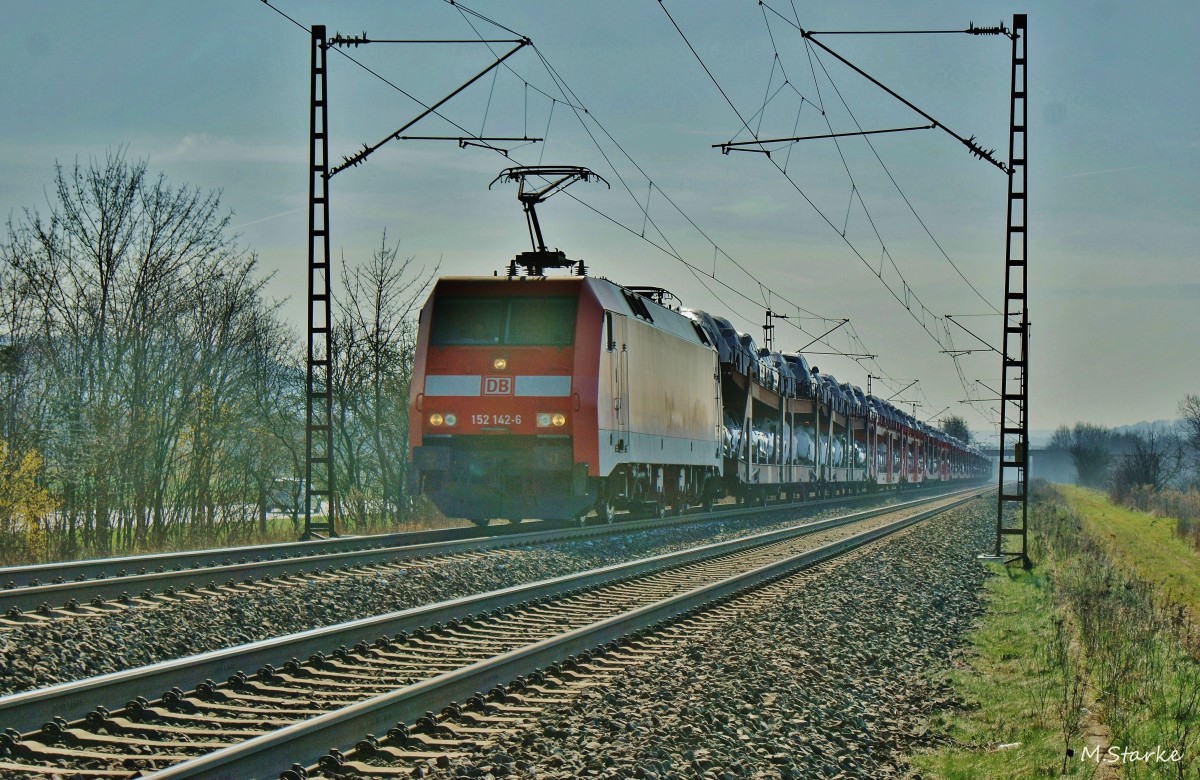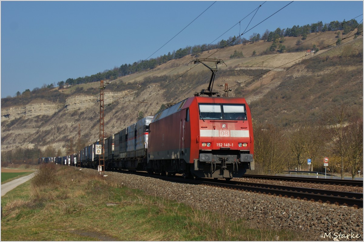 152 149-1 am 11.03.14 mit einen Aufliegerzug bei Thüngersheim.