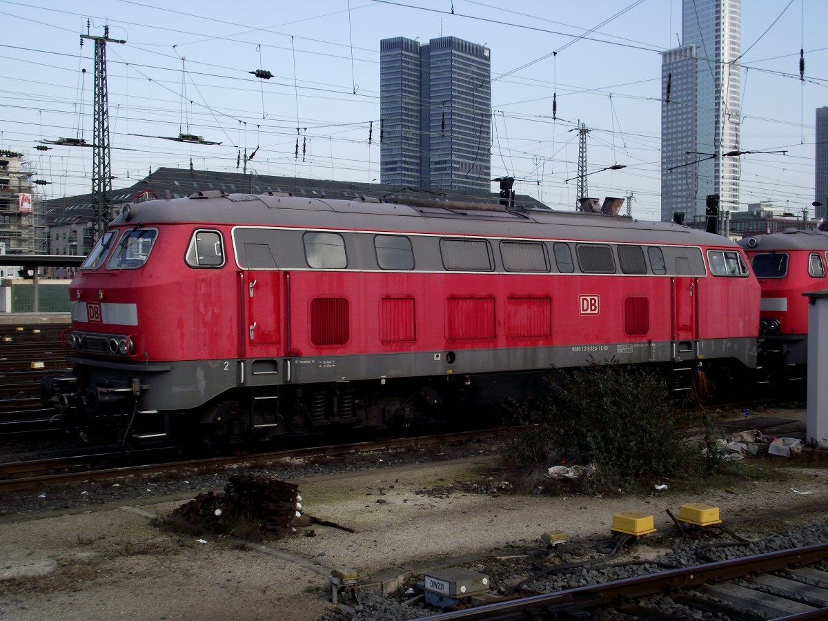 Die Scharfenbergkupplung einer 218 von DB Fernverkehr am 05.03.14 in Frankfurt Hbf von Bahnsteig aus fotografiert