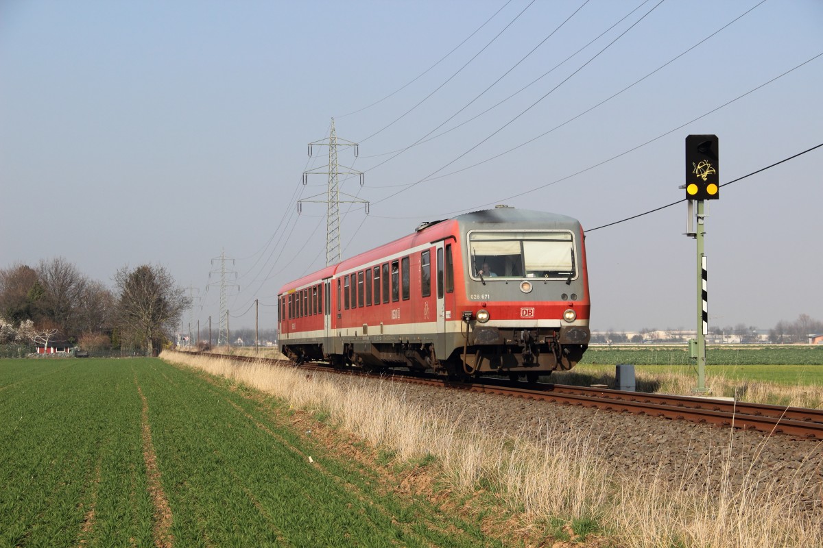 628 671 als RB 11648 (Euskirchen - Bad Münstereifel) nahe des Haltepunktes Zuckerfabrik am 14.03.14