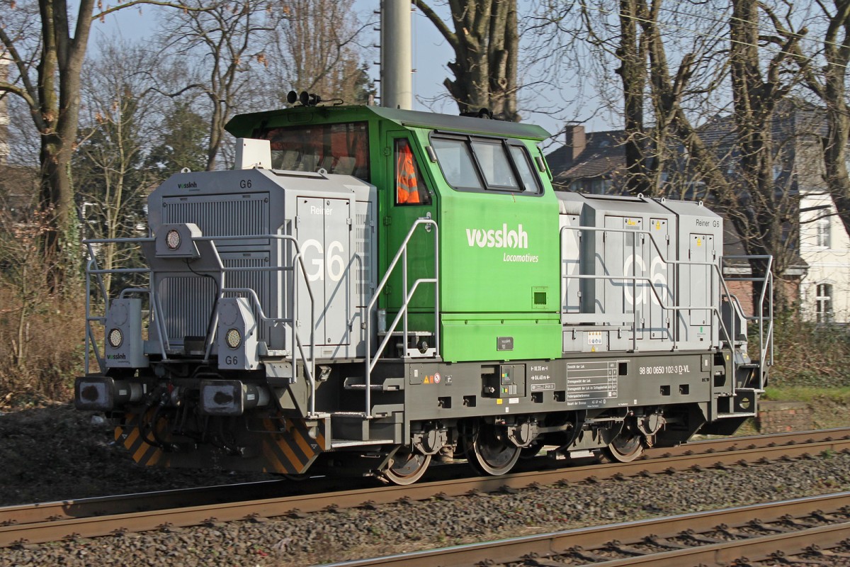Die Lok 2 der Magdeburger Hafenbahn (MHG) war bis 2009 als 298 046-4 bei der DB im Einsatz und wurde 2010 als Hybridlok umgebaut. Am 09.03.2014 sonnt sich die Maschine am Bw der Hafenbahn.