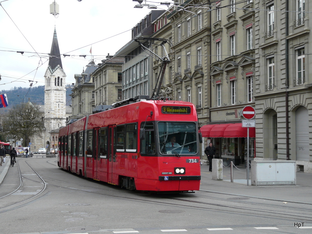 Bern mobil - Tram Be 4/8 734 unterwegs auf der Linie 3 in Bern am 01.03.2014