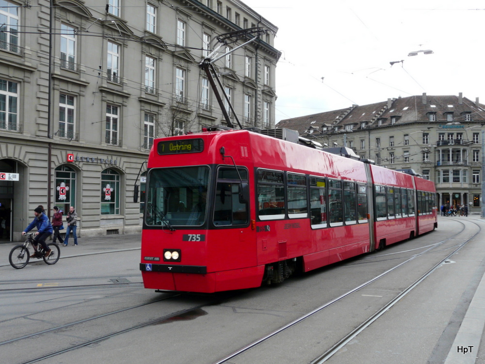 Bern mobil - Tram Be 4/8 735 unterwegs auf der Linie 7 in Bern am 01.03.2014