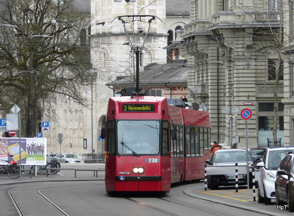 Bern mobil - Tram Be 4/8 738 unterwegs auf der Linie 3 in Bern am 01.03.2014