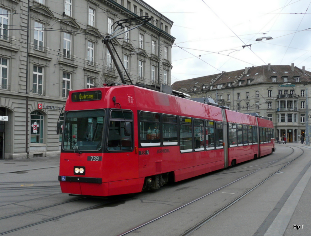 Bern mobil - Tram Be 4/8 739 unterwegs auf der Linie 7 in Bern am 01.03.2014