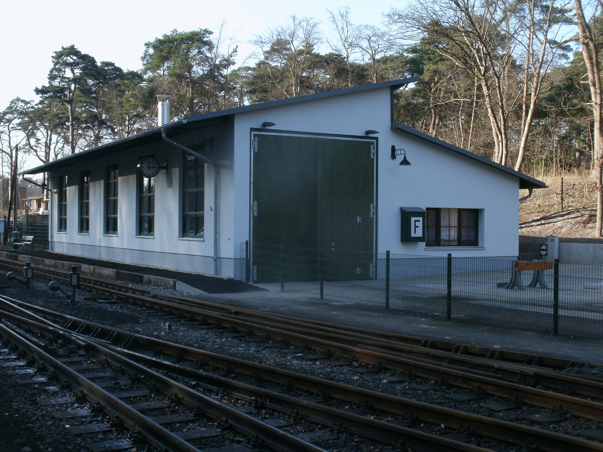 Der fertiggestellte,neue Lokschuppen in Göhren am 13.März 2014.