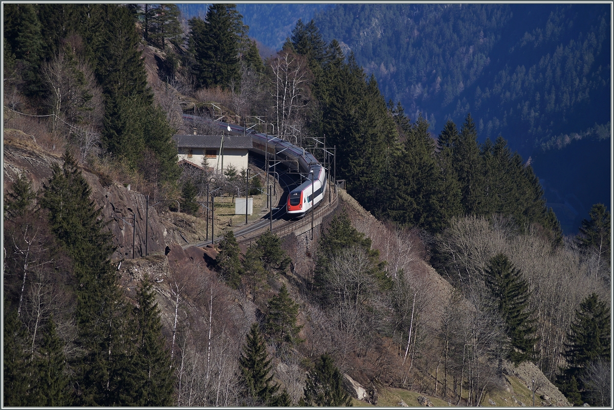 Der ICN 10014 von Lugano nach Zürich ist oberhalb von Wassen auf der Gotthard Nordrampe unterwegs.