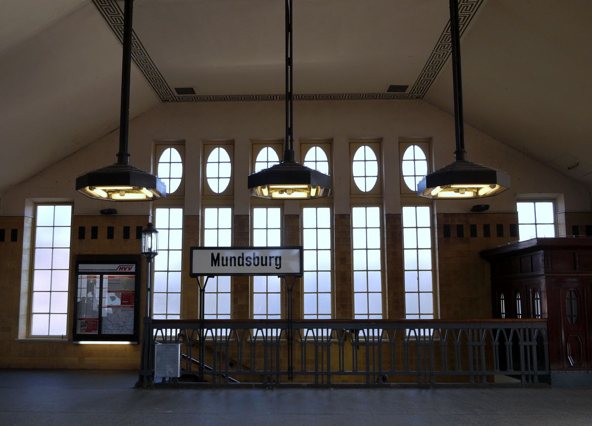 Das wohl schönste Empfangsgebäude der Hamburger Hochbahn: die Haltestelle "Mundsburg" - erbaut 1912, kaum beschädigt im Feuersturm 1943, vor knapp 30 Jahren aufwändig restauriert. 13.3.2014