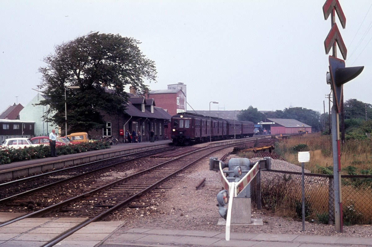 DSB-Kleinstadtbahnhöfe: Der Mo 1873 kommt am 5. September 1976 im Bahnhof Bedsted Thy an. - Bedsted ist ein Städtchen auf der Bahnstrecke zwischen Struer und Thisted. Arriva bedient heute die Strecke mit Triebzügen des Typs LINT 41 (Regionalverkehr), aber es gibt noch DSB-Züge zwischen Kopenhagen und Thisted, und zwar zwei ICL-Züge (FD-Züge) jeden Tag. Diese DSB-Züge halten auch in Bedsted Thy.