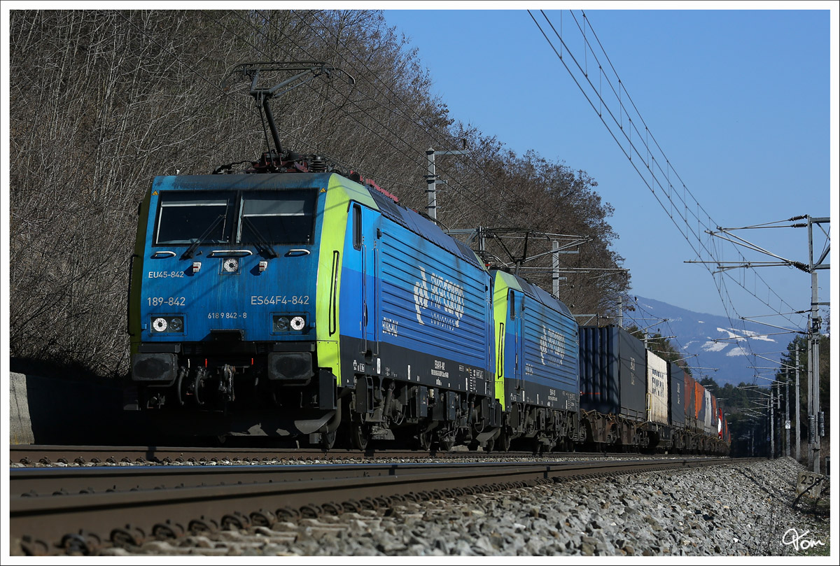 PKP Cargo 189 842 + 189 154 ziehen den Containerzug 42089 von Breclav nach Villach.