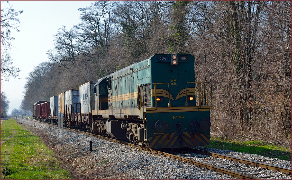 SŽ 644-004 zieht Güterzug durch Maribor-Studenci Richtung Tezno Verschiebebahnhof. /13.3.2014